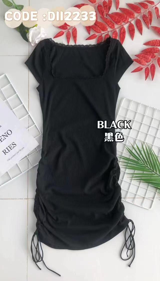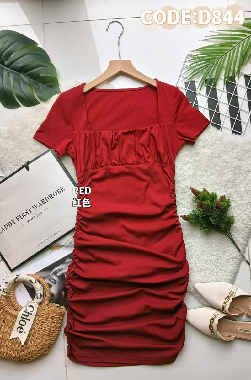 【D844】短袖方领纯棉弹力连身裙子,两侧抽褶设计 ❤️❤️