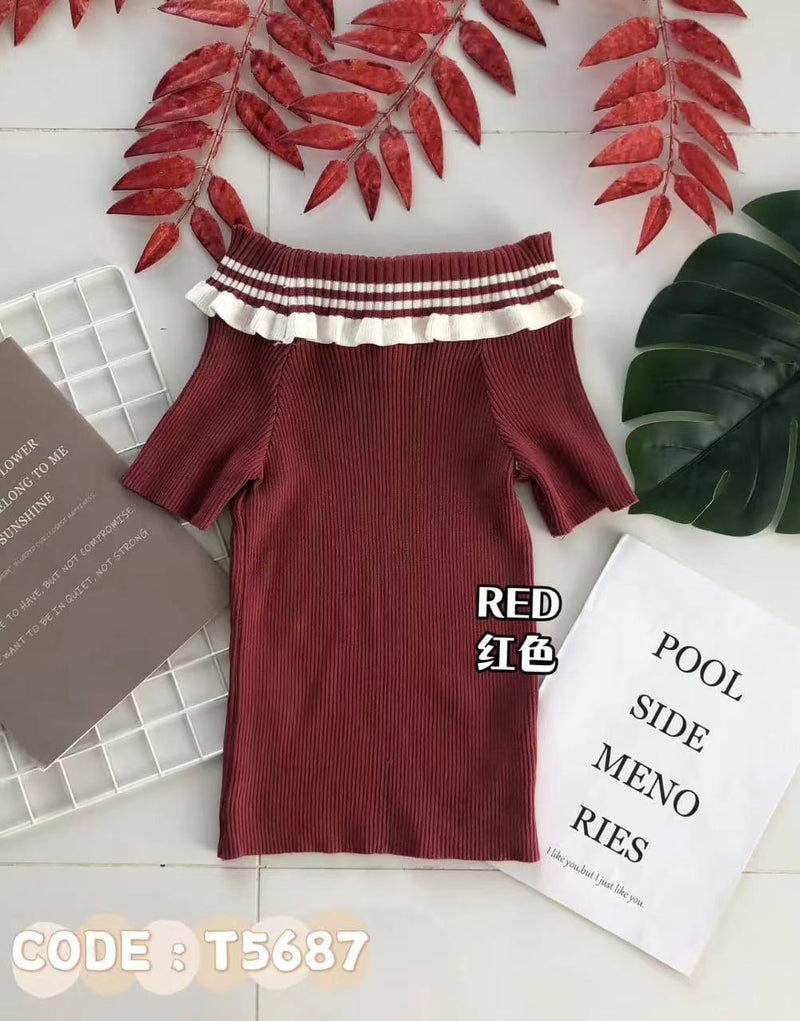 【T5687】针织弹力一字肩短袖百搭上衣 ❤️❤️