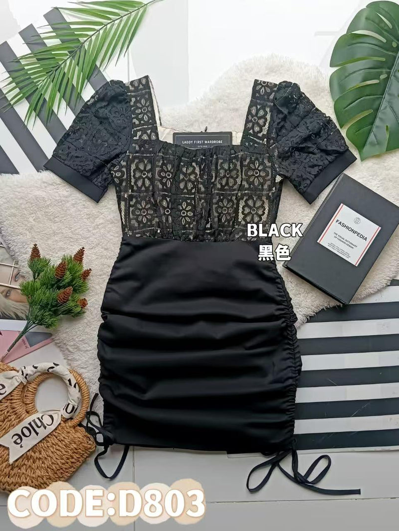 【D809】水溶蕾丝拼接西装连身裙子,两侧抽绳设计,内层有里布❤️❤️
