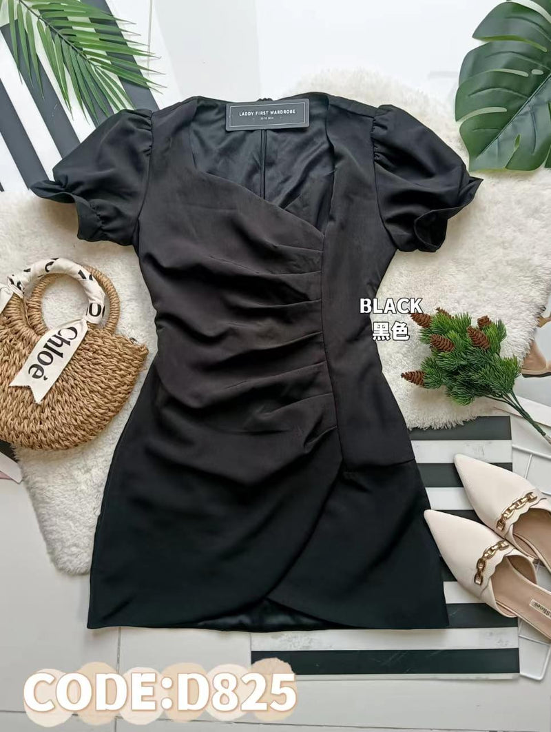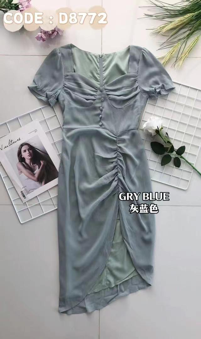 【D8772】不规则设计雪纺泡泡袖时尚开叉连身裙子 ❤❤