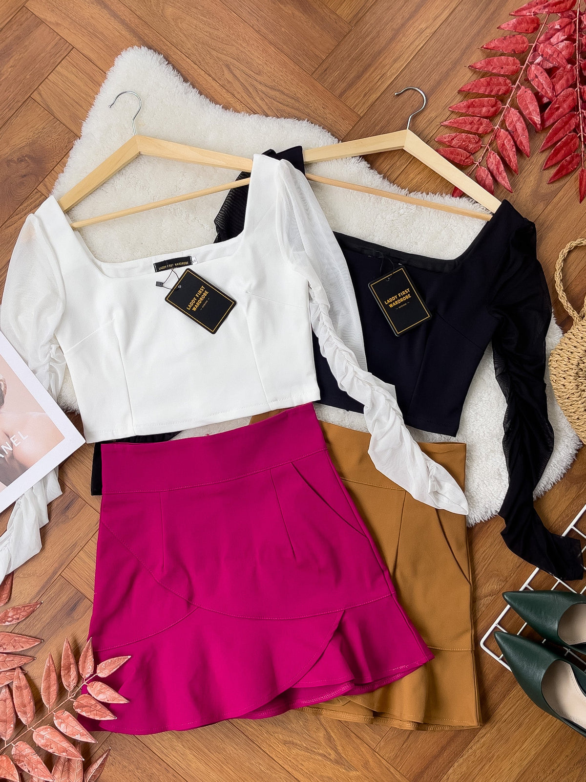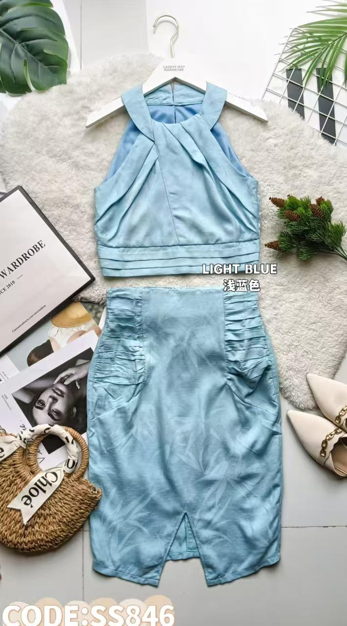 【SS846】两件式西装套装CUT IN挂脖无袖上衣➕西装高腰百搭裙子,内层有里布 ❤️❤️