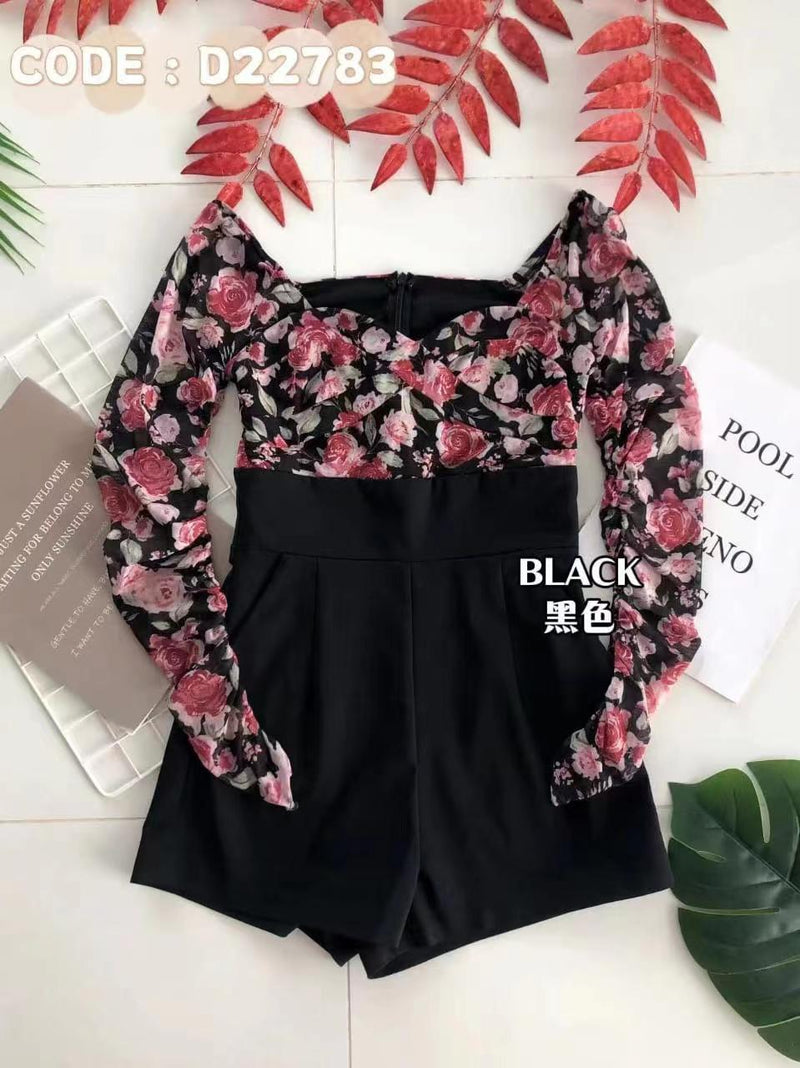 【D22783】雪纺碎花长袖拼接西装连身短裤 ❤❤