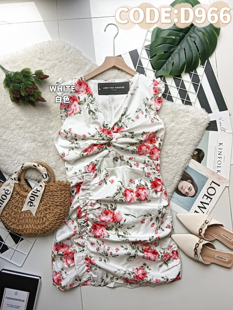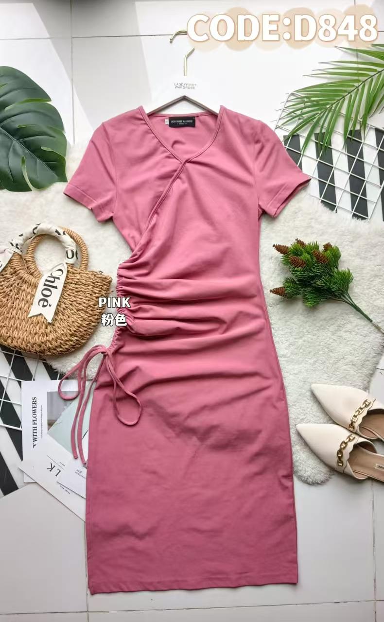 【D848】V领短袖纯棉弹力连身裙子,侧边抽绳设计 ❤️❤️