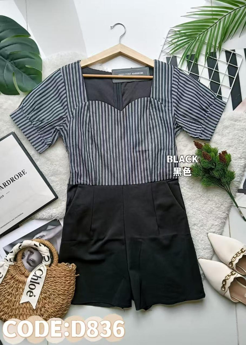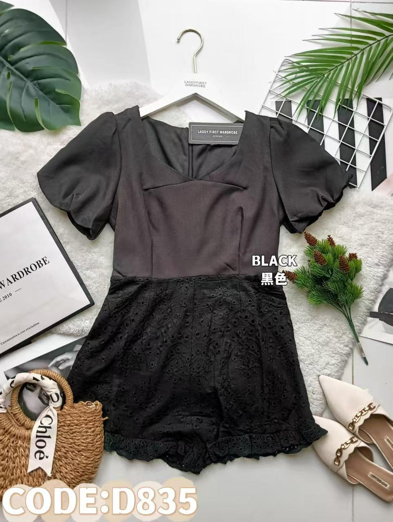 【D835】西装泡泡短袖拼接铜花连身短裤 ❤️❤️