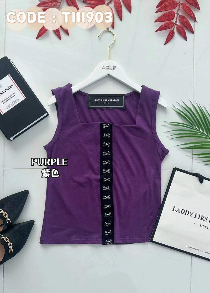 【T111903】纯棉弹力方领无袖百搭上衣 ❤️❤️